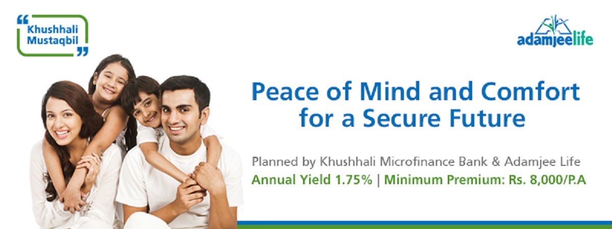 Khushhali Mustaqbil is a unit linked regular premium insurance product mutually designed by Khushhali MFB & Adamjee Life. Product aims to bring value & financial stability to every household by covering them under an umbrella of insurance coverage and providing healthy investment returns to secure your children education’s & marriages, build profitable savings & reaching retirement life with a peace of mind.
