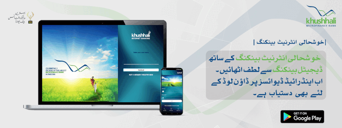 اب خوشالی موبائل اپلی کیشن کے ذریعہ موزوں موبائل بینکنگ خدمات سے لطف اندوز ہو سکتے ہیں جو اپنے تمام صارفین کو اپنے کے ایم بی ایل بینک اکاؤنٹس کو دن میں 24 گھنٹے ، ہفتے میں 7 دن تک رسائی حاصل کرنے کی سہولت فراہم کرتی ہے ، جہاں وہ اکاؤنٹ بیلنس کا کھوج رکھ سکتے ہیں ، اکاؤنٹ کے بیانات تک رسائی حاصل کرسکتے ہیں ، بلوں کی ادائیگی، فنڈز کی منتقلی، خریداری کو ٹریک کرنا اور بار بار آنے والی ادائیگیوں کا بٹن کے ٹچ پر شیڈول بنائیں اور بہت کچھ کر سکتے ہیں۔ اس خدمت کو استعمال کرنے کے لئے ، ابھی کے ایم بی ایل موبائل ایپ پر رجسٹر ہوں اور چلتے چلتے لامحدود بینکاری خدمات کو غیر مقفل کریں۔