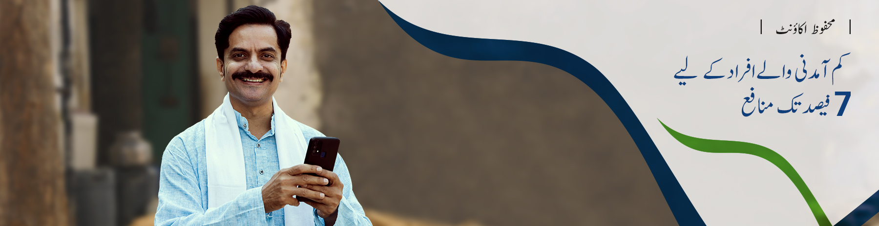 محفوظ اکاؤنٹ ایک بچت اکاؤنٹ ہے جو خاص طور پر کم آمدنی والے افراد کی ضرویات کو مدّنظر رکھتے ہوئے بنایا گیا ہے۔ اس میں کم از کم ماہانہ بیلنس کی کوئی شرط نہیں اوراستعمال میں نہایت آسان ہے۔